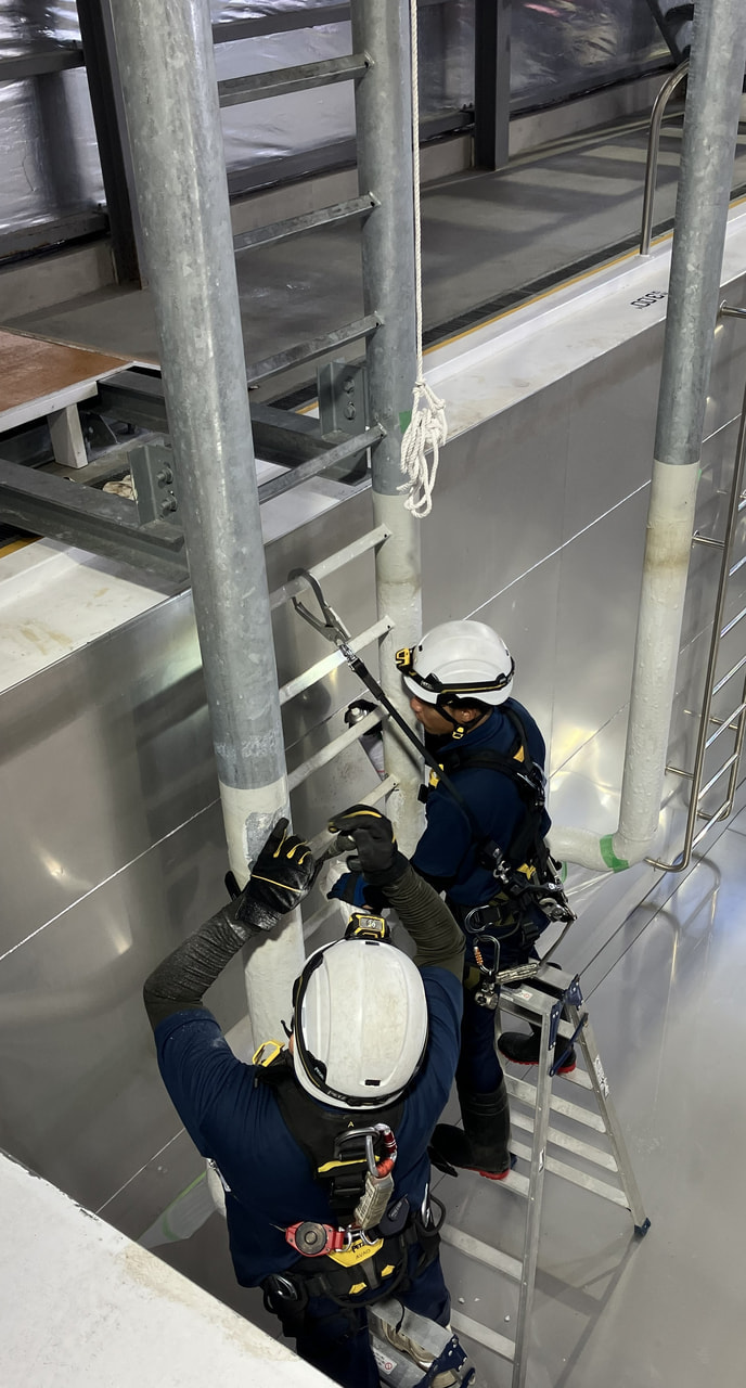 トランスファー訓練用梯子の塗装を手直ししました。この梯子は、洋上風車への安全な乗り移りを学ぶための重要